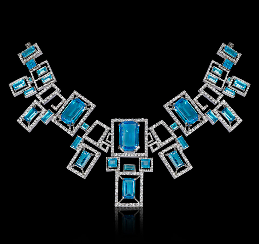 Realizzata in oro 18k ,diamanti naturali ed acquamarina