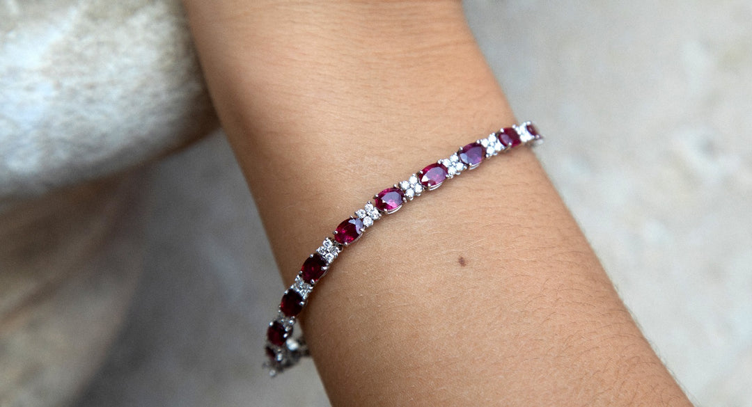 Bracciale in oiro bianco 18k,con rubini naturali e diamanti