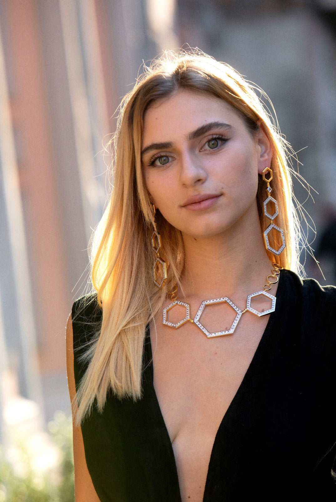 Questi gioielli sono ispirati a un'antica città romana della Magna Grecia, oggi Sicilia, "MAGUM MICHAELI", oggi Gran Michele. La sua pianta perfettamente esagonale rappresenta in modo inequivocabile lo stile unico di questa collana e di questi orecchini.